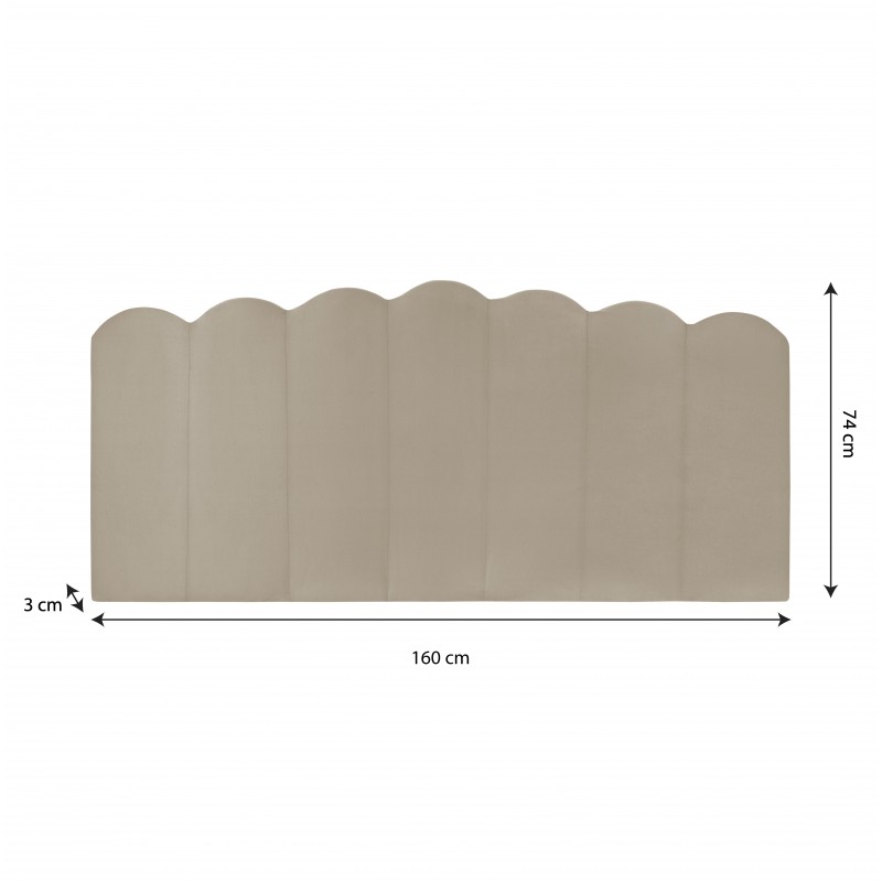 Cabecero tapizado con terciopelo , listo para colgar , incluye herrajes . Fabricado en España. Limpiar con un paño húmedo.