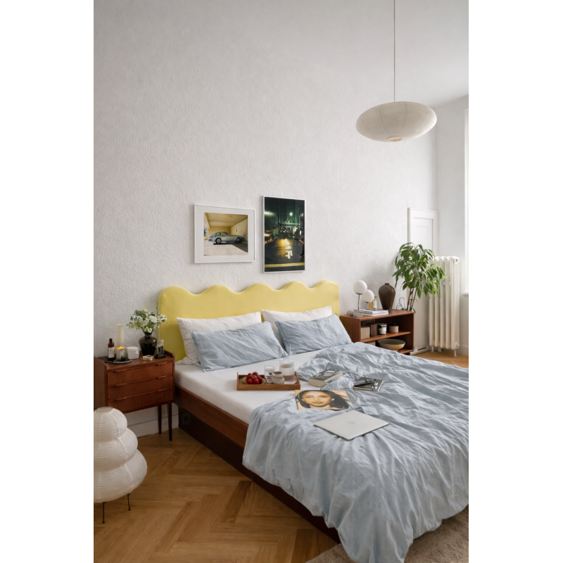 Wavy Headboard Upholstered Velvet for 150cm Bed Lemonade