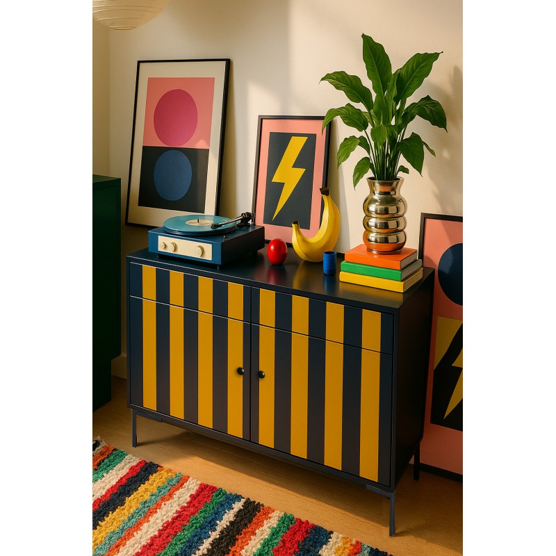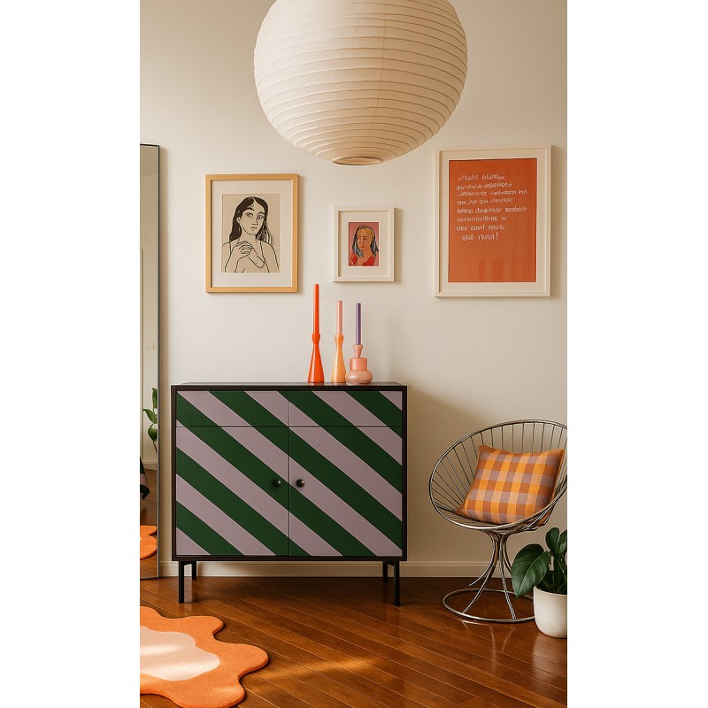 Aparadores, cómodas y muebles de almacenaje en colores vibrantes que no solo cumplen su función práctica, sino que también decoran y elevan el espacio. Una opción ideal para dar vida a salones, entradas o dormitorios.