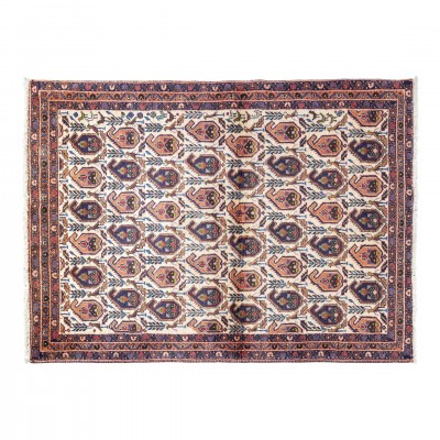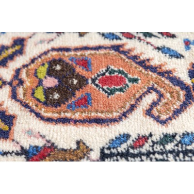 Esta alfombra Afshari, tejida a mano por las tribus nómadas de la región de Afshar en Irán, es una muestra única de la rica tradición textil persa.