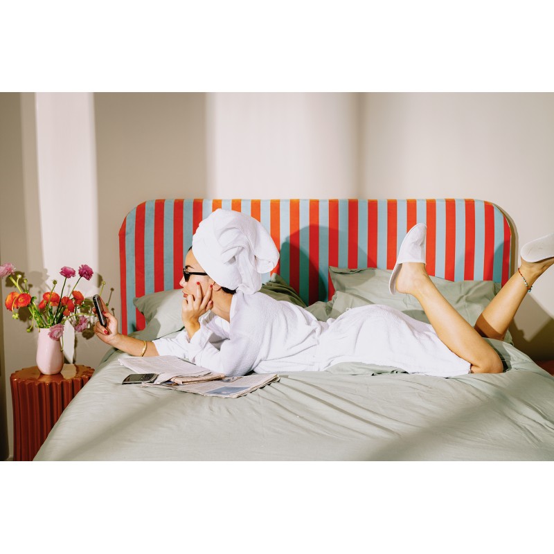 Cabecero Eddie Tapizado Velvet (Stripes Copper Blue)