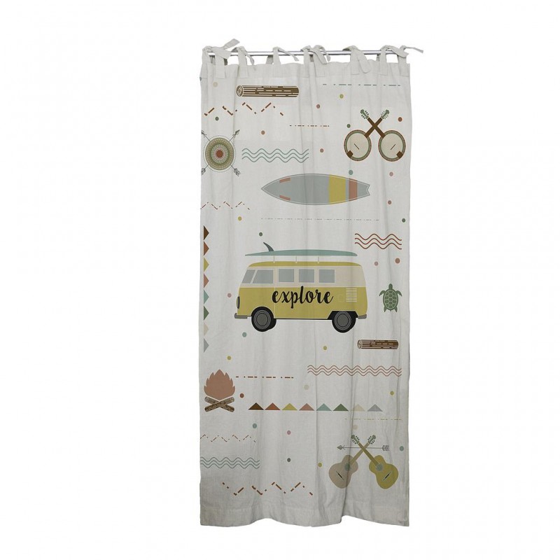 Printed curtain in linen, made with ribbons to hang on a natural texture bar that allows light to pass in a subdued way. includes thermal adhesive tape to regulate height, 15% Linen 85% Pol machine washable up to 30º, Made in Spain
