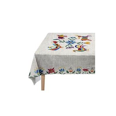 140x140 tablecloth. 30% Linen 70% Polyester. Linen texture natural product. Machine wash max. 30 ° C. Do not use bleach. Do not use dryer. Iron at low temperature. Do not dry clean.