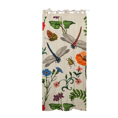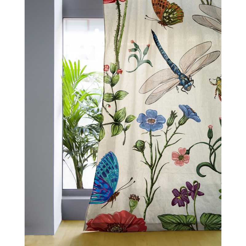 Printed curtain in linen, made with ribbons to hang on a natural texture bar that allows light to pass in a subdued way. includes thermal adhesive tape to regulate height, 15% Linen 85% Pol machine washable up to 30º, Made in Spain