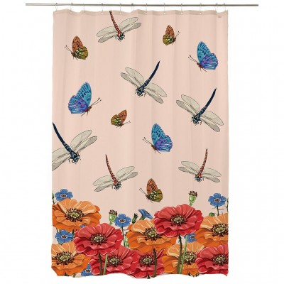 Bathroom curtain in 100% polyester fabric, water-repellent finish, environment-friendly stamping, plastic hanger system for bar or rail, Made in Spain