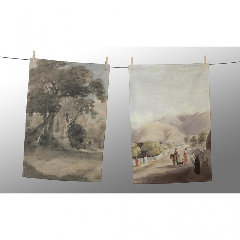 Set de 2 paños de cocina estampado. 100% Poliester. Fabricado en España.