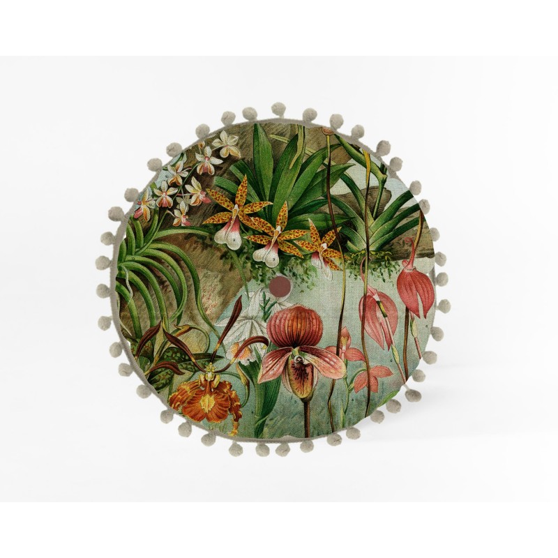 Cojin Redondo Madroño con Botón (Jungle Flowers)