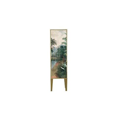 Vitrina fabricada en madera maciza de pino alistonada sin nudos de 15mm. Puerta acabada con rejilla natatural de caña. Interior con tres estantes de madera. Puerta con bisagras y tirador metálico.