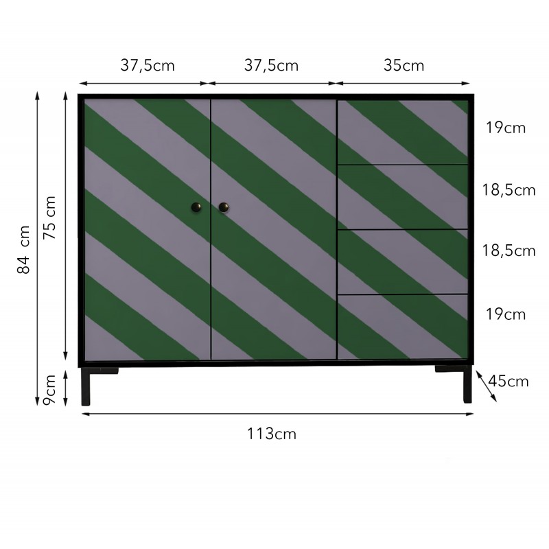 Aparador con 4 cajones y 2 puertas con 1 balda interior.