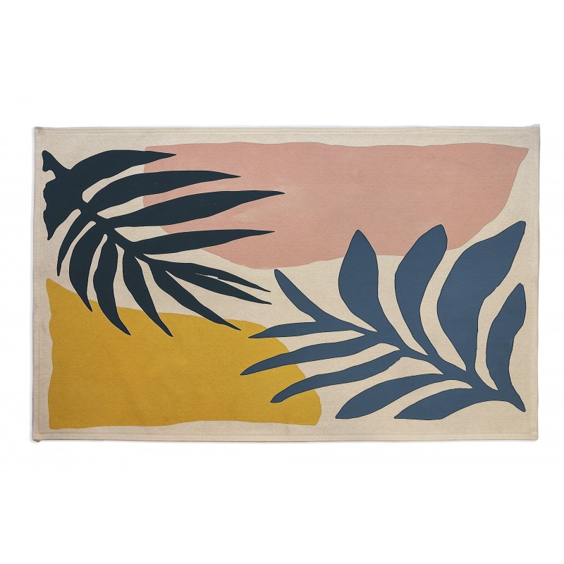 Alfombra Decorativa "Living" Multiusos lavable con antideslizante 140x90 cm (Palm Leaves)