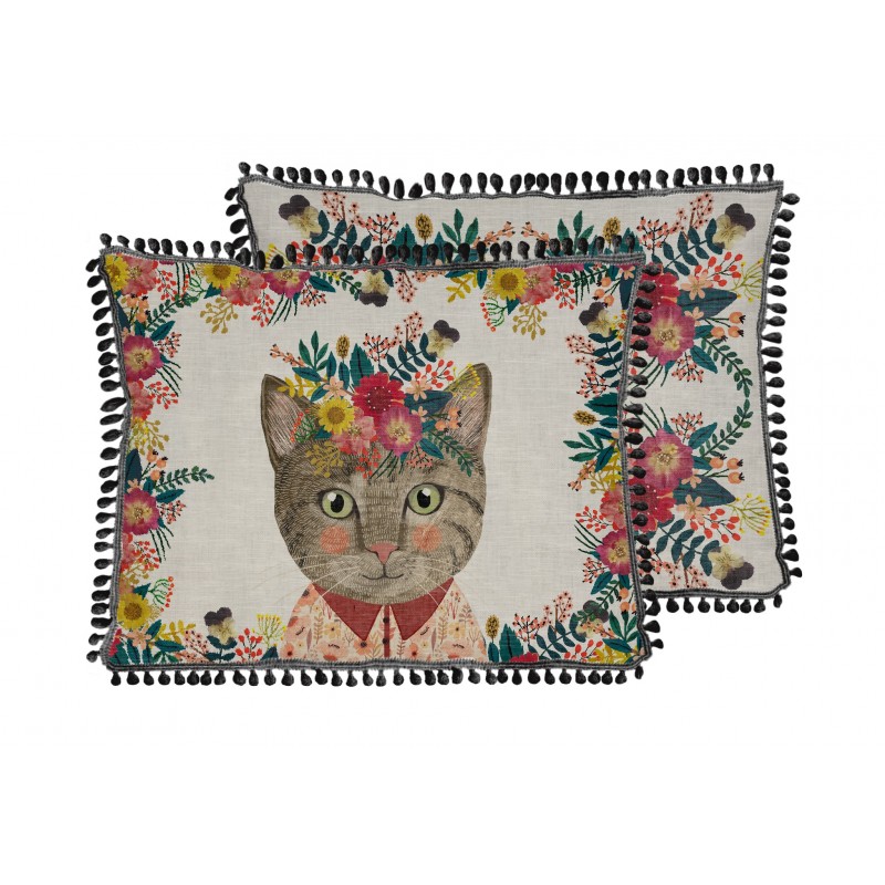 ] Cojin 50x35 Lino Fleco (Floral Cat)