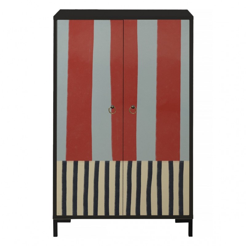 Muebles para aportar un toque de calidez y para mantener el orden en casa. Pensadas y proyectadas para guardar vajilla, textiles y otros complementos domésticos. Armario con 2 puertas fabricado en España. Puertas decoradas con tintas respetuosas con el medio ambiente. Bisagras con cierre amortiguado y tiradores metálicos. Tablero de fibras de densidad media (MDF) recubierto en melanina. El producto se entrega desmontado para ahorrar espacio, en paquete plano y con todas las instrucciones detalladas paso a paso y llaves para montar fácilmente. Para poder garantizar una mayor seguridad, este mueble tiene un soporte de pared. Estructura metálica decorada con pintura epoxi. Se entrega desmontada, de fácil montaje.