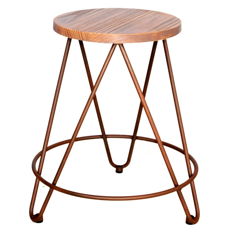 Le fauteuil de style industriel Bushey possède une structure métallique légère mais résistante avec une finition oxydée et un siège en bois.