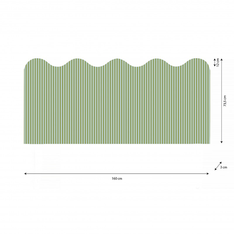 Tête de lit Wavy revêtue de velours rayé pour lit de 150cm Green-Water