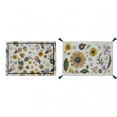 Set 2 Mantel Individual Lino con Borlas (Watercolor Flowers)
