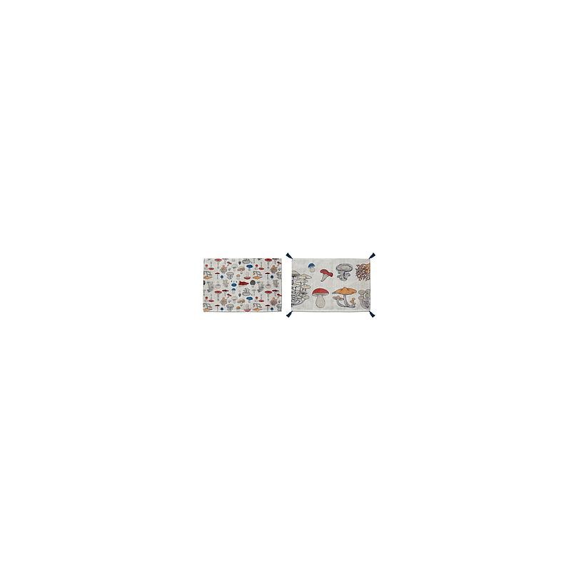 Set of 2 tablecloths made of linen and tassels printed with UV resistant inks. Wash maximum 40Cº. .30% linen 70% Pol. Do not use bleach. Low temperature dryer Ironing low temperature. Do not dry clean.