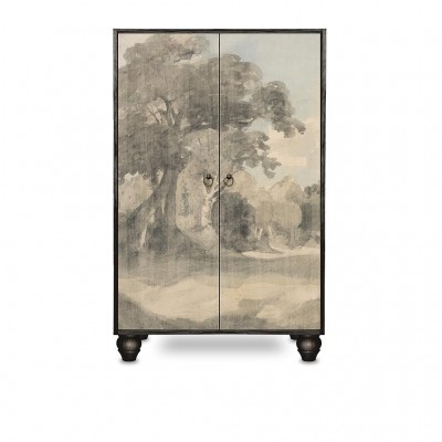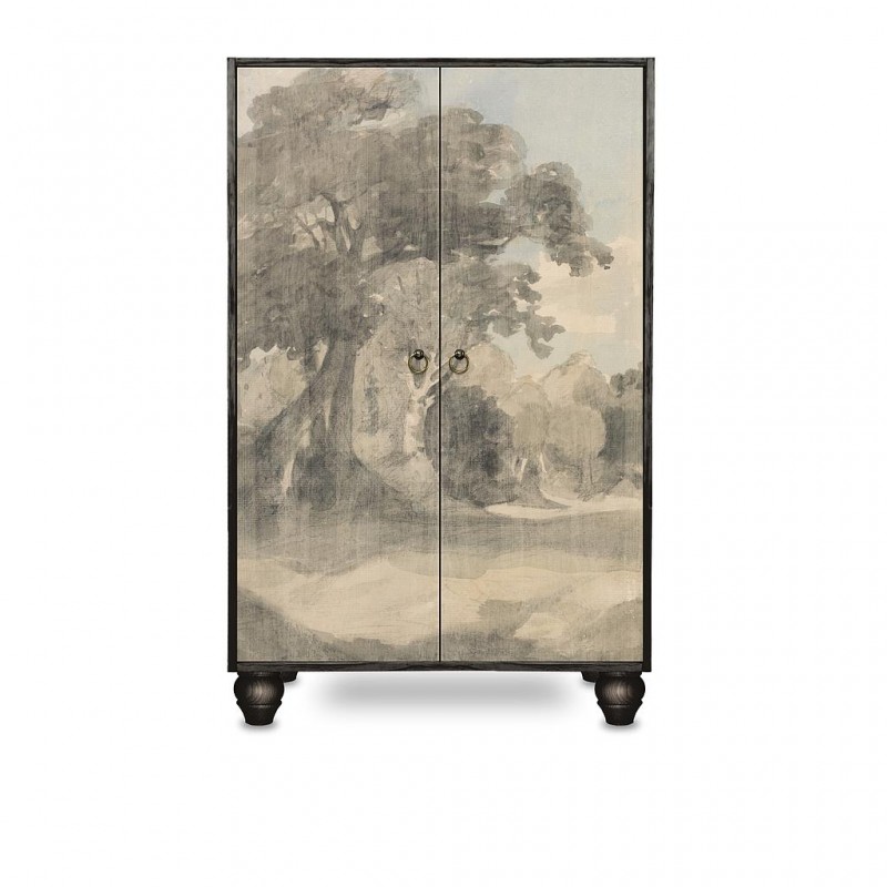Sideboard cupboard made of 20mm pine wood. Patterned doors with different designs, hinged. Turned legs. Round knobs with hanging tassels. Interior with 2 shelves.