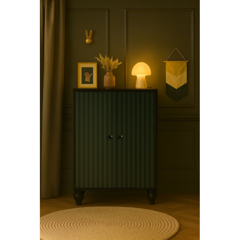Sa façade cannelée vert profond évoque les intérieurs classiques et la sophistication tranquille. Un meuble qui ne crie pas, mais murmure avec beauté. Chaque ligne verticale apporte ordre, équilibre et harmonie visuelle.
