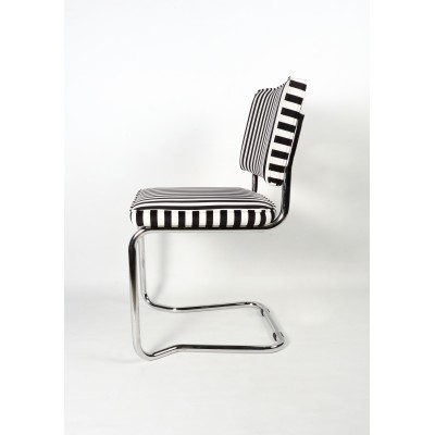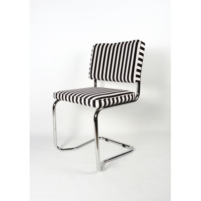 Chaise au design intemporel dotée d’une structure tubulaire en métal, avec assise et dossier tapissés. Une pièce solide et confortable qui associe des lignes épurées à une silhouette légère, pensée pour s’intégrer naturellement dans des espaces résidentiels ou professionnels.